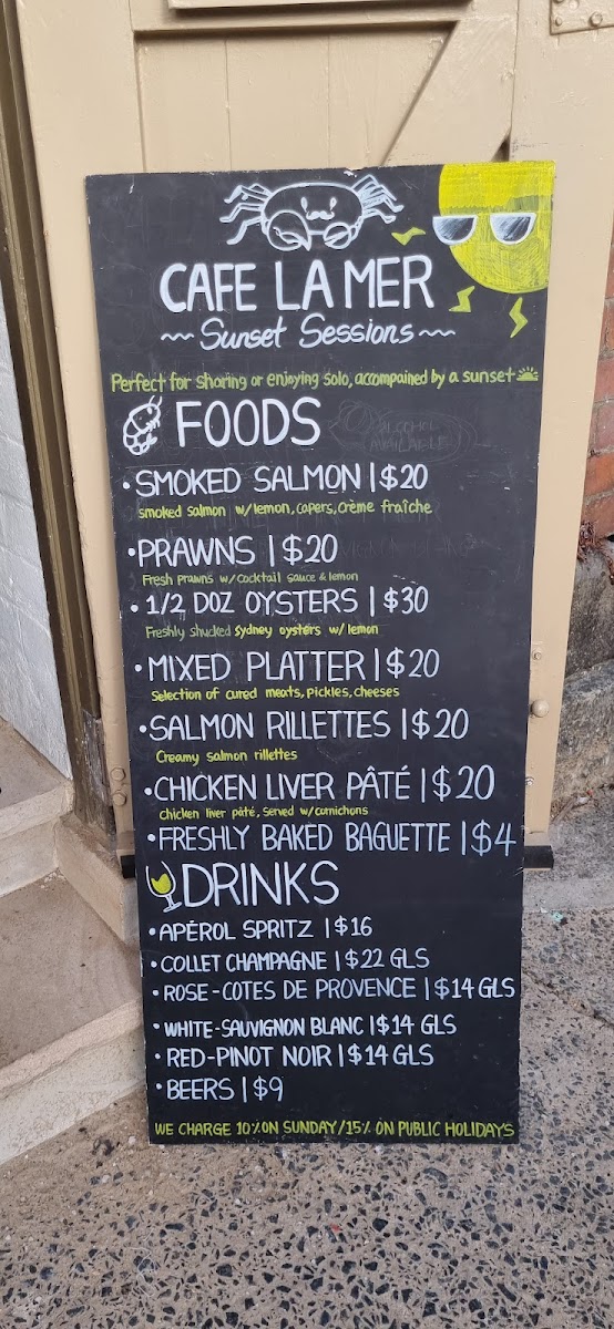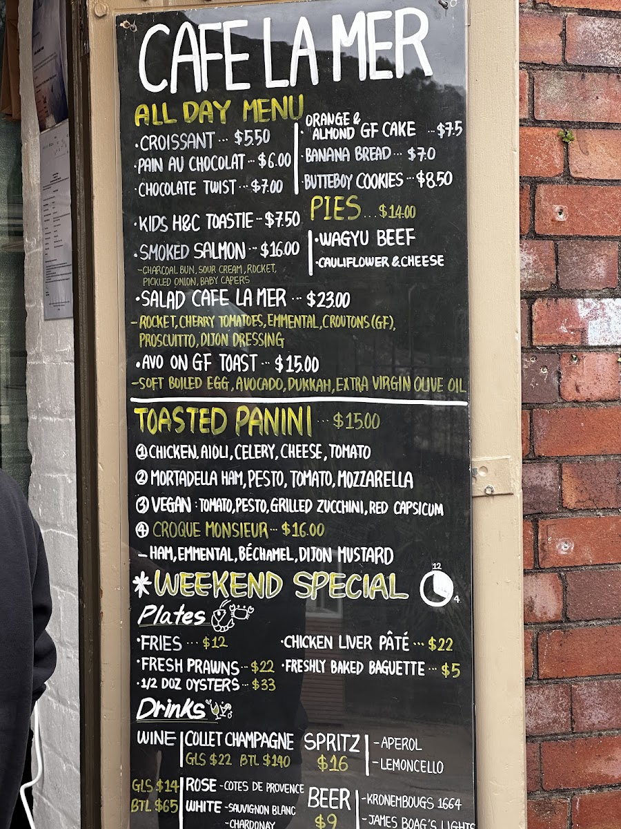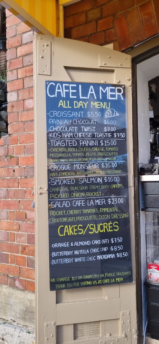Welcome to Cafe La Mer Chowder Bay, a hidden gem nestled in beautiful Mosman, NSW. This charming café offers a delightful escape with breathtaking ocean views and a cozy ambiance. The menu features mouthwatering options such as Smoked Salmon for A$20.00, perfect for seafood lovers, and the indulgent Butterboy Nutella Choc Chip cake at A$8.50 for those with a sweet tooth.